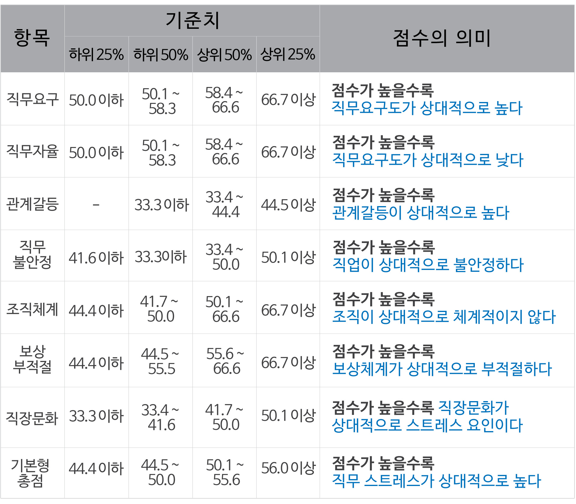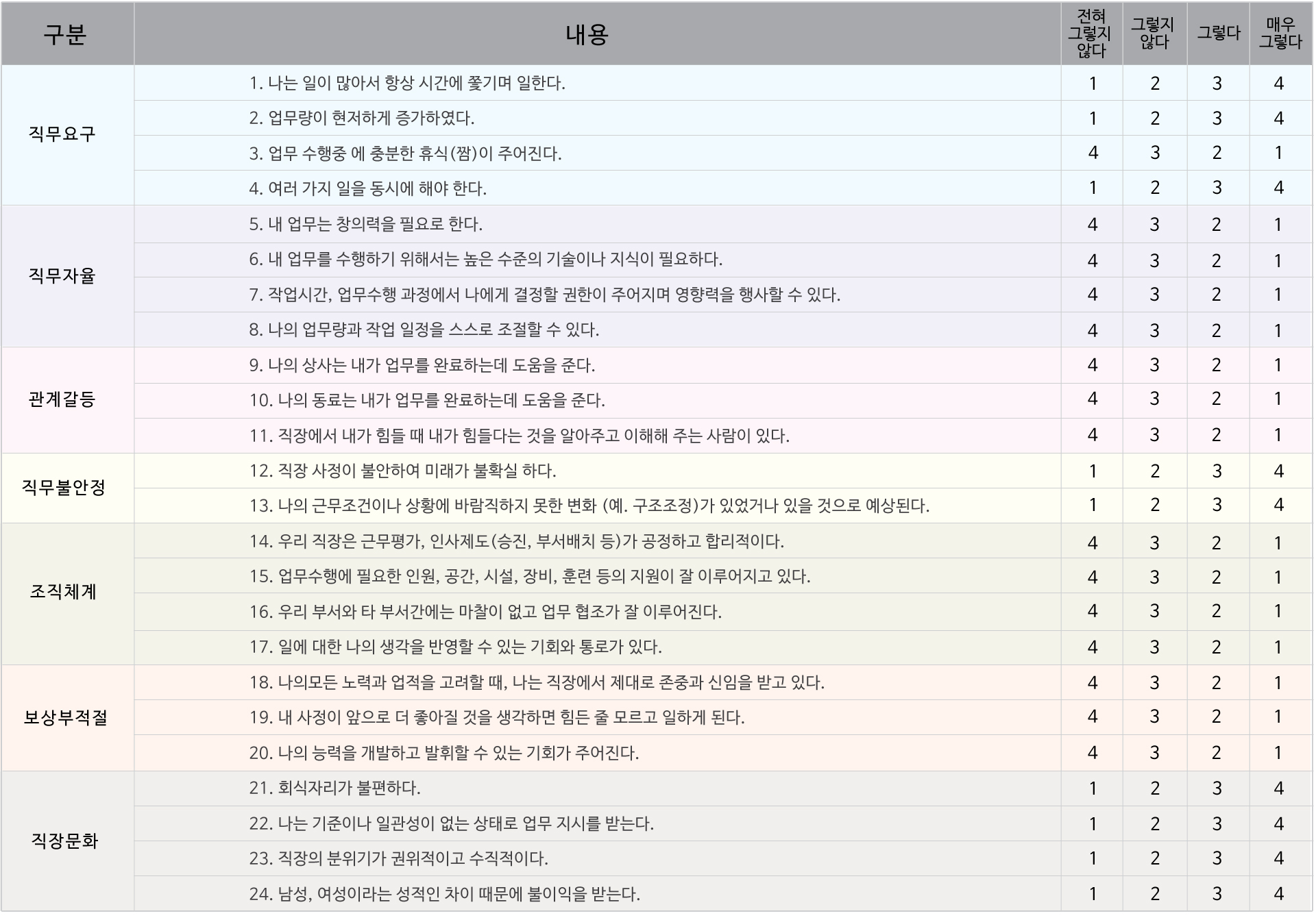 ¡Ø Á÷¹«½ºÆ®·¹½º¿¡ ¿µÇâÀ» ³¢Ä¡´Â ¿ä¼Ò¿¡ ±âÀÎÇÏ¿© ½ºÆ®·¹½º Á¤µµ¸¦ ÃøÁ¤ÇÏ¸ç Æò°¡¸¦ ½Ç½ÃÇÕ´Ï´Ù.
